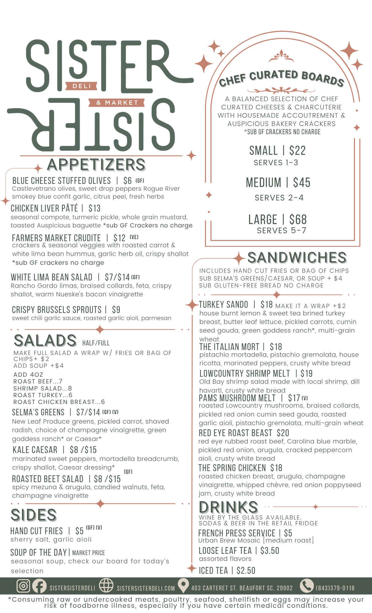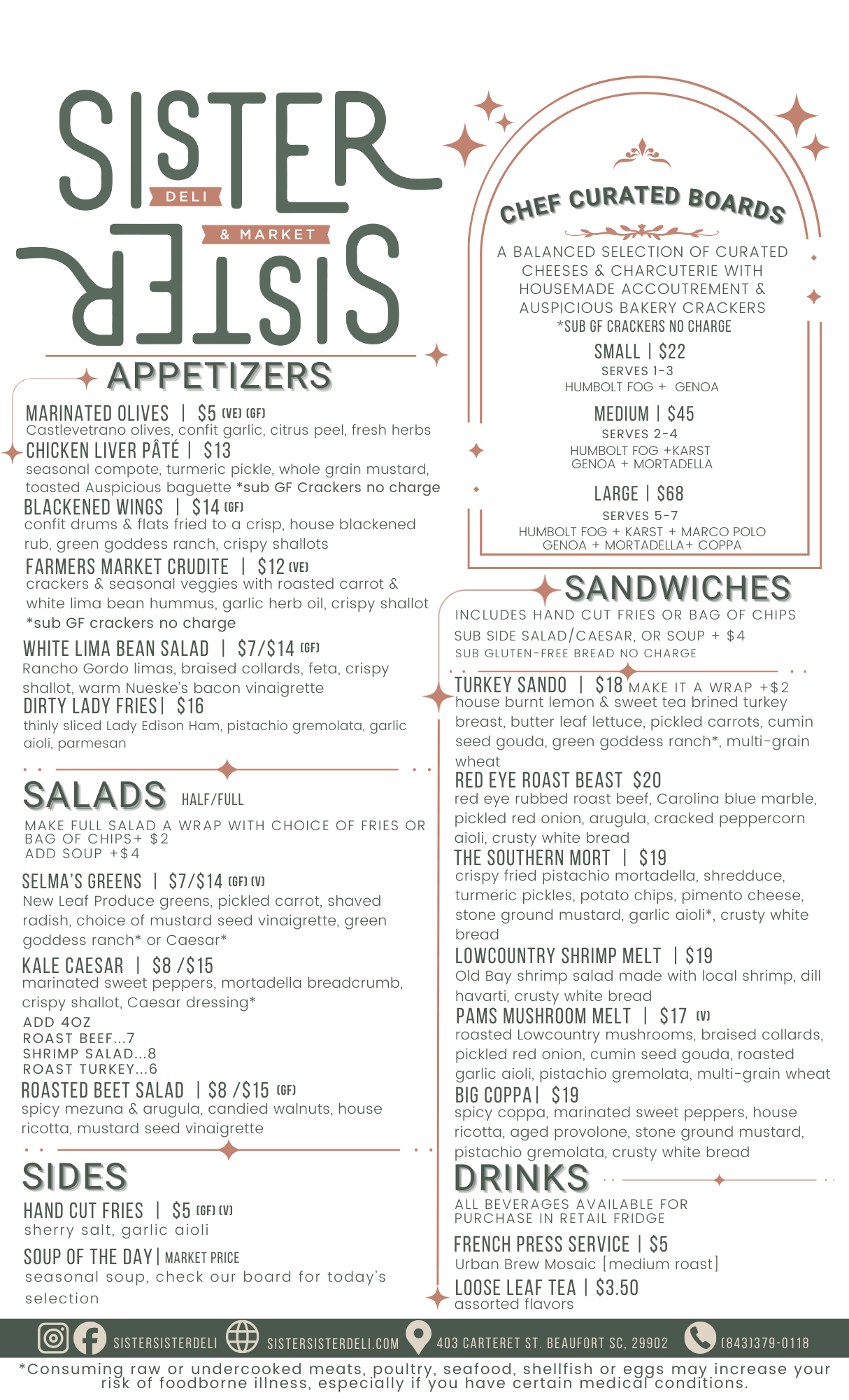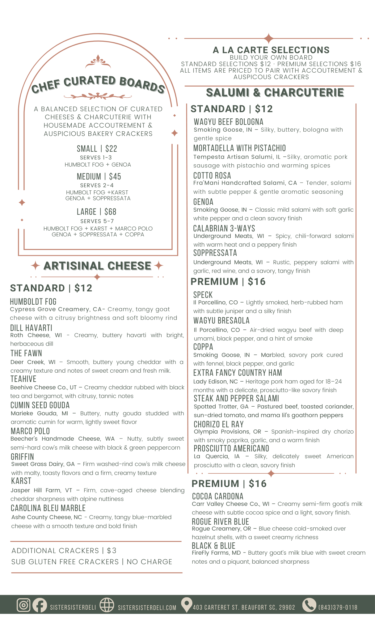 Sister Sister is a gourmet provisions market & deli dedicated to exceptional American-made ingredients. We specialize in cheese and charcuterie sourced from small-batch producers whose thoughtful, sustainable practices support a stronger local food system.